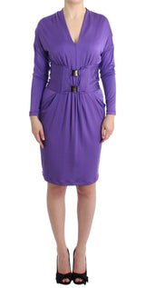 Gorgeous brand new with tags, 100% Authentic CLASS CAVALLI purple jersey longsleeved belted dress.