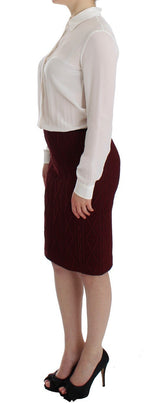 Material: Top: 100% silk, Skirt: 85% wool, 25% polyester, 10% polyamide