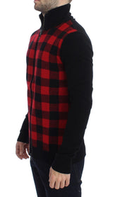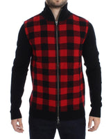 Absolutely stunning, 100% Authentic, brand new with tags Costume National C’N’C red and black checkered wool blend full zipper sweater.