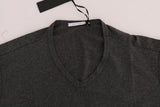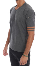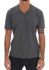 Gray Cotton V-neck T-Shirt
