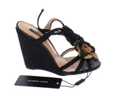 Gorgeous, 100% Authentic Brand new with tags Dolce & Gabbana Black and Beige Leather and Rafia Wedges Sandals Shoes. This item comes from the exclusive MainLine Dolce & Gabbana collection.