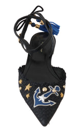 Gorgeous, brand new with tags 100% Authentic Dolce & Gabbana anchor raffia and leather tassel slingbacks shoes.