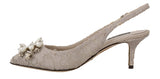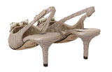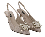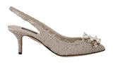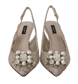 Beige Taormina Lace Crystal Slingbacks Shoes