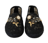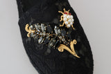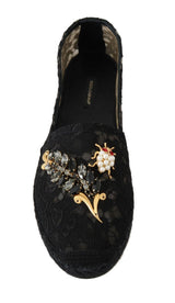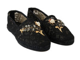 Gorgeous brand new with tags, 100% Authentic Dolce & Gabbana black Taormina pizzo lace crystal espadrilles shoes.