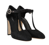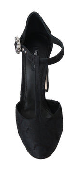 Black Jacquard Crystal Floral Sandal