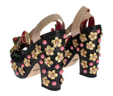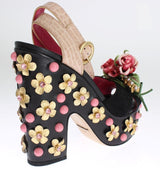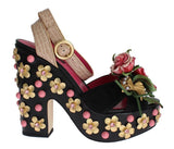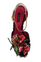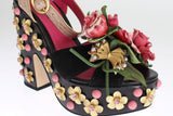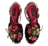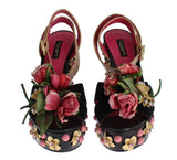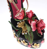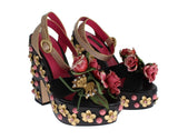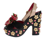 Gorgeous brand new with tags, 100% Authentic Dolce & Gabbana black leather crystal and Roses embellished ankle strap platform sandals shoes.
