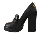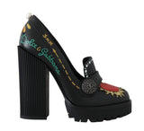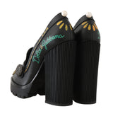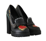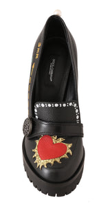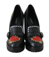 Black Leather Platform Red Heart Pumps