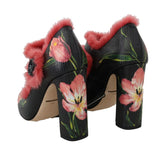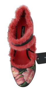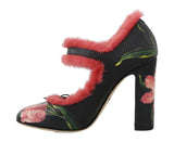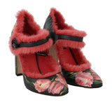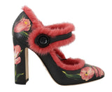 Gorgeous brand new with tags, 100% Authentic Dolce & Gabbana black with pink tulip print Mink Fur Mary Janes shoes.