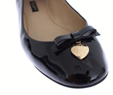 Black Patent Leather Heart Ballerina Flat Shoes