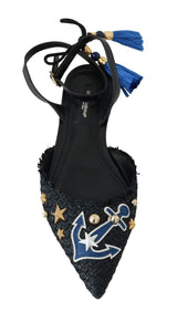 Gorgeous, brand new with tags 100% Authentic Dolce & Gabbana anchor raffia and leather tassel slingbacks shoes.