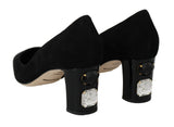 Black Suede Crystals Pumps Heels