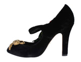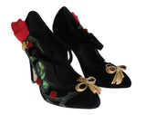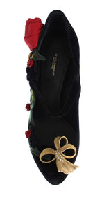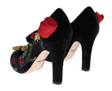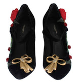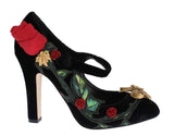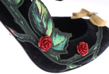 Dolce and Gabbana Black Velvet Red Roses Mary Janes pumps.
