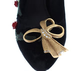 Style: Women's designer pumps shoes mary janes heels black shoes red flowers gold bow fashion style