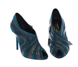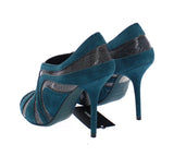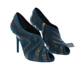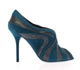 Blue Suede Snakeskin Open Toe Pumps Shoes