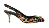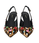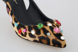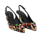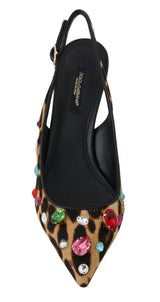 Gorgeous, brand new with tags 100% Authentic Dolce & Gabbana brown leopard print pony hair crystal slingback shoes.