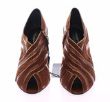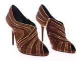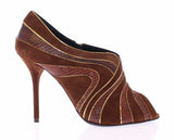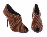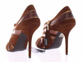 Brown Suede Snakeskin Open Toe Pumps Shoes