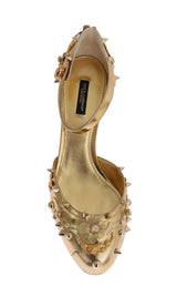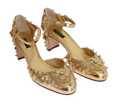 Gorgeous brand new with tags, 100% Authentic Dolce & Gabbana gold leather crystal studded Mary Janes pumps.