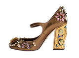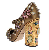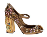 Gorgeous, brand new with tags 100% Authentic Dolce & Gabbana gold leather crystal Mary Janes pumps shoes. This item comes from the exclusive MainLine Dolce & Gabbana collection.