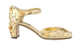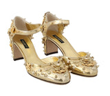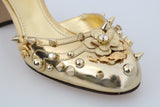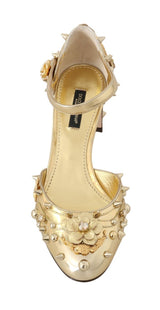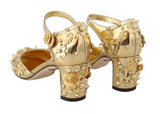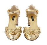 Gorgeous brand new with tags, 100% Authentic Dolce & Gabbana gold leather floral Roses embellished studded Mary Janes pumps.
