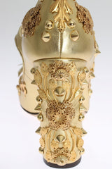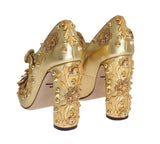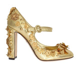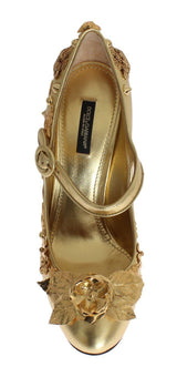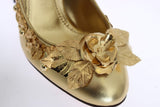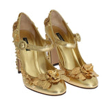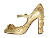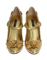 Gorgeous brand new with tags, 100% Authentic Dolce & Gabbana gold leather floral Roses embellished studded Mary Janes pumps.
