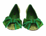 Gorgeous, brand new with tags, 100% Authentic Dolce & Gabbana green sequined silk bow loafers flats shoes. This items comes from the exclusive MainLine Dolce & Gabbana collection.