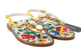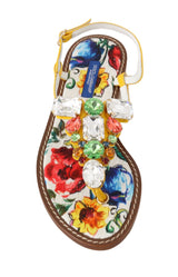 Gorgeous brand new with tags 100% Authentic Dolce & Gabbana multicolor Majolica print crystal flips flops sandals shoes .