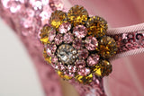Embellishment: Pink and gold crystals, flowers, brass leaves