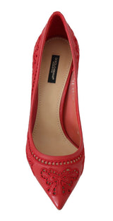 Gorgeous, brand new with tags 100% Authentic Dolce & Gabbana red floral cutout leather pumps.
