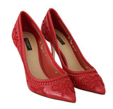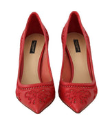 Red Leather Floral Cutout Pumps