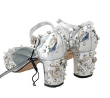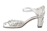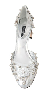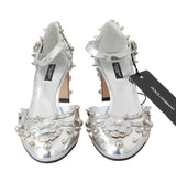 Gorgeous brand new with tags, 100% Authentic Dolce & Gabbana silver leather embellished studded Mary Janes pumps.