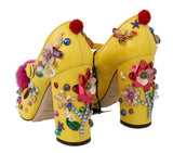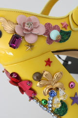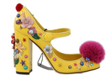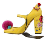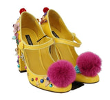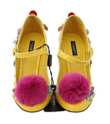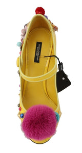 Gorgeous brand new with tags, 100% Authentic Dolce & Gabbana yellow leather with pink Mink Fur crystal embedded Mary Janes shoes.
