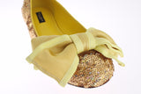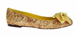 Gorgeous, brand new with tags, 100% Authentic Dolce & Gabbana yellow gold sequined silk bow loafers flats shoes. This items comes from the exclusive MainLine Dolce & Gabbana collection.