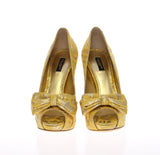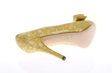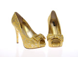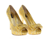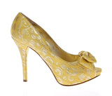 Yellow Silk Brocade Bow Platform Pumps Shoes