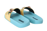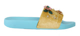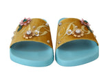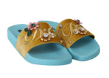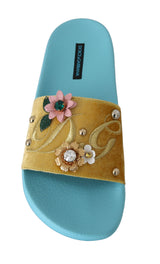 Yellow Velvet Crystal Beachwear Slides