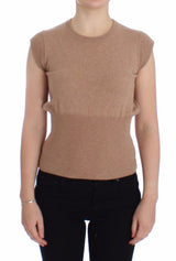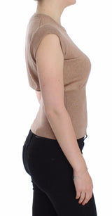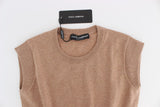 Beige Cashmere Knit Top Crewneck Sweater Vest