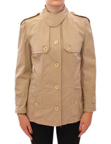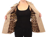 Gorgeous brand new, 100% Authentic Dolce & Gabbana Mainline – Black Label detailed coat. Beige short trench coat model with rough collar and cuffs. Featuring button closure in the front and and many buttoned details. Lined on the inside with classic leopard printed lining. Classic design that will never grow out of fashion!