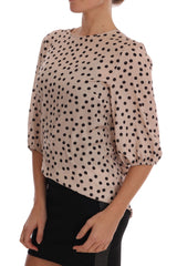 Gorgeous brand new with tags, 100% Authentic DOLCE & GABBANA beige polka dotted silk blouse top.