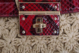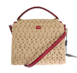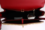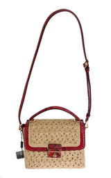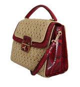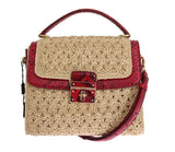 Dolce & Gabbana GRETA beige straw and red snakeskin hand and shoulder bag purse.