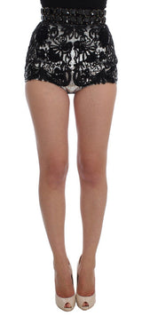 Gorgeous brand new with tags, 100% Authentic Dolce & Gabbana black crystal sequined high waist mini shorts. This item comes from the MainLine Dolce & Gabbana Collection.
