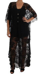 Gorgeous brand new with tags, 100% Authentic Dolce & Gabbana black Taormina floral lace crystal full length cape dress.