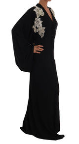 Gorgeous brand new with tags, 100% Authentic Dolce & Gabbana black floral lace silk stretch crystal full length cape dress.
