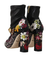 Studs, crystals, DG Logo buttons, leather with floral print,