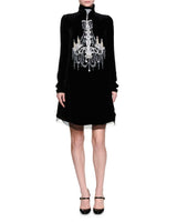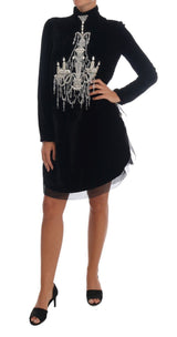 Gorgeous brand new with tags, 100% Authentic Dolce & Gabbana black velvet Mock-Neck crystal Embellished-Chandelier Dress.