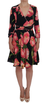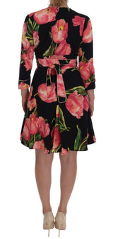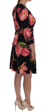 Gorgeous brand new with tags, 100% Authentic Dolce & Gabbana black with pink tulips print shift dress.