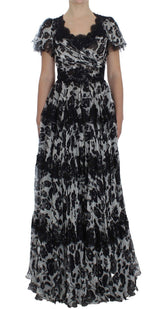 Gorgeous brand new with tags, 100% Authentic Dolce & Gabbana black and white floral print Silk lace and ricamo full length maxi dress.