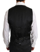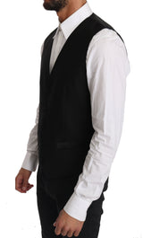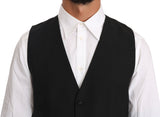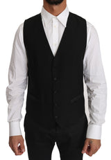 Black Solid Wool Silk Waistcoat Vest