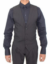 Absolutely stunning, 100% Authentic, brand new with tags Dolce & Gabbana black and gray striped wool stretch Dress Vest. This item comes from the MainLine Dolce & Gabbana collection.