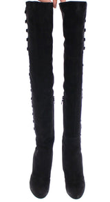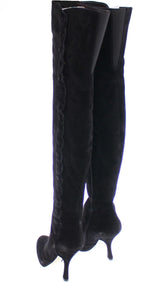 Gorgeous brand new with tags, 100% Authentic Dolce & Gabbana Black Suede Leather High Heel Boots. This item comes from the Exclusive MainLine Dolce&Gabbana collection.