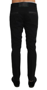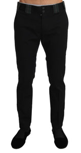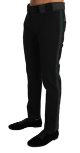 Black Wool Slim Stretch Trousers Pants