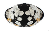 Color: Black with white floral Ricamo, gold and silver metal detailing